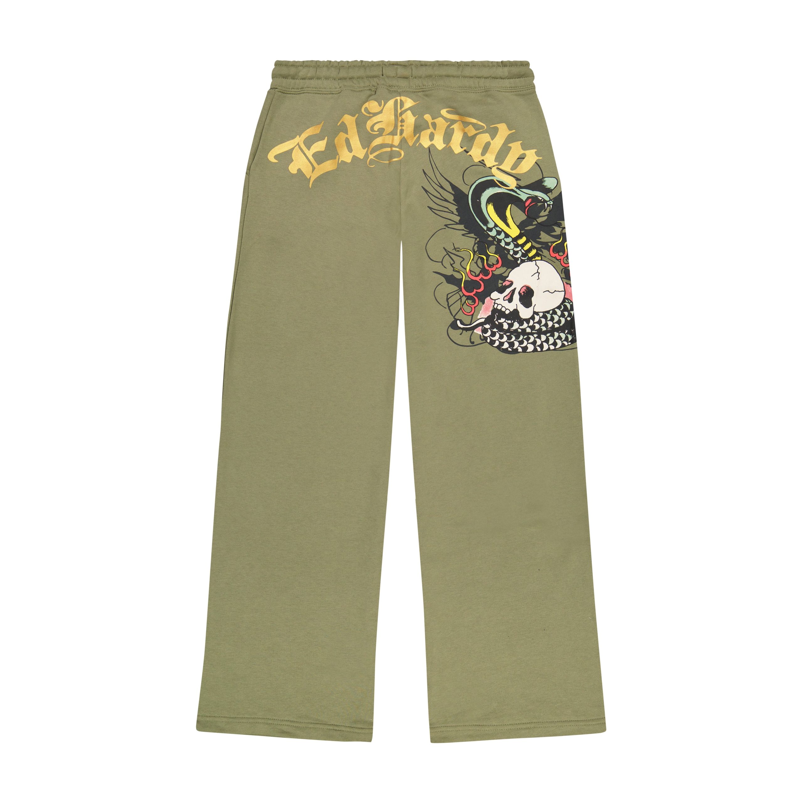 Ed Hardy’s fleece sets add a modern twist to the styles that reigned in the early 2000’s . These wide leg sweatpants are complete with a signature Cobra Flame graphic.?