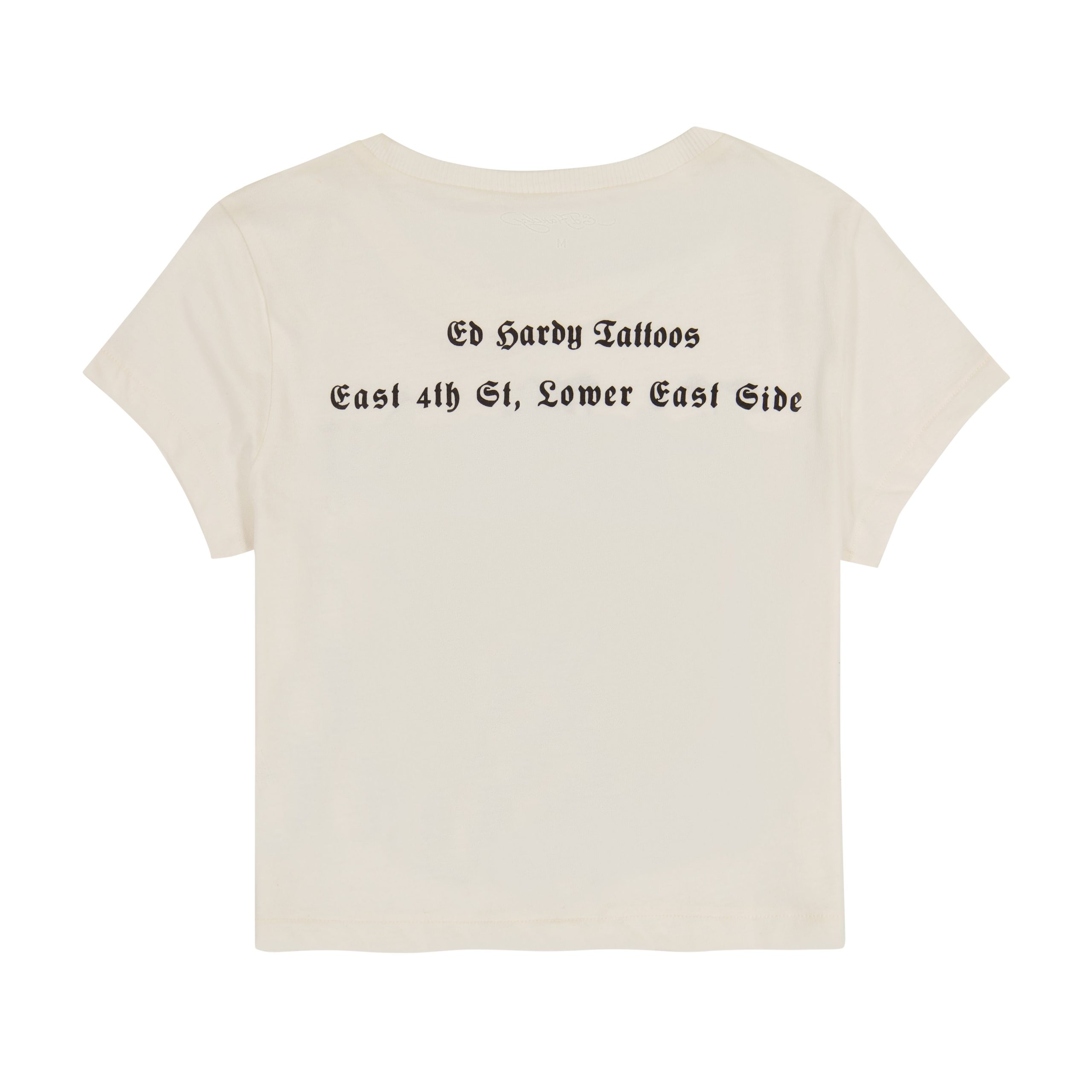 Our classic baby tee silhouette featuring a signature Ed Hardy flame skull graphic. Constructed from a soft cotton blend and complete with an archival Ed Hardy logo.