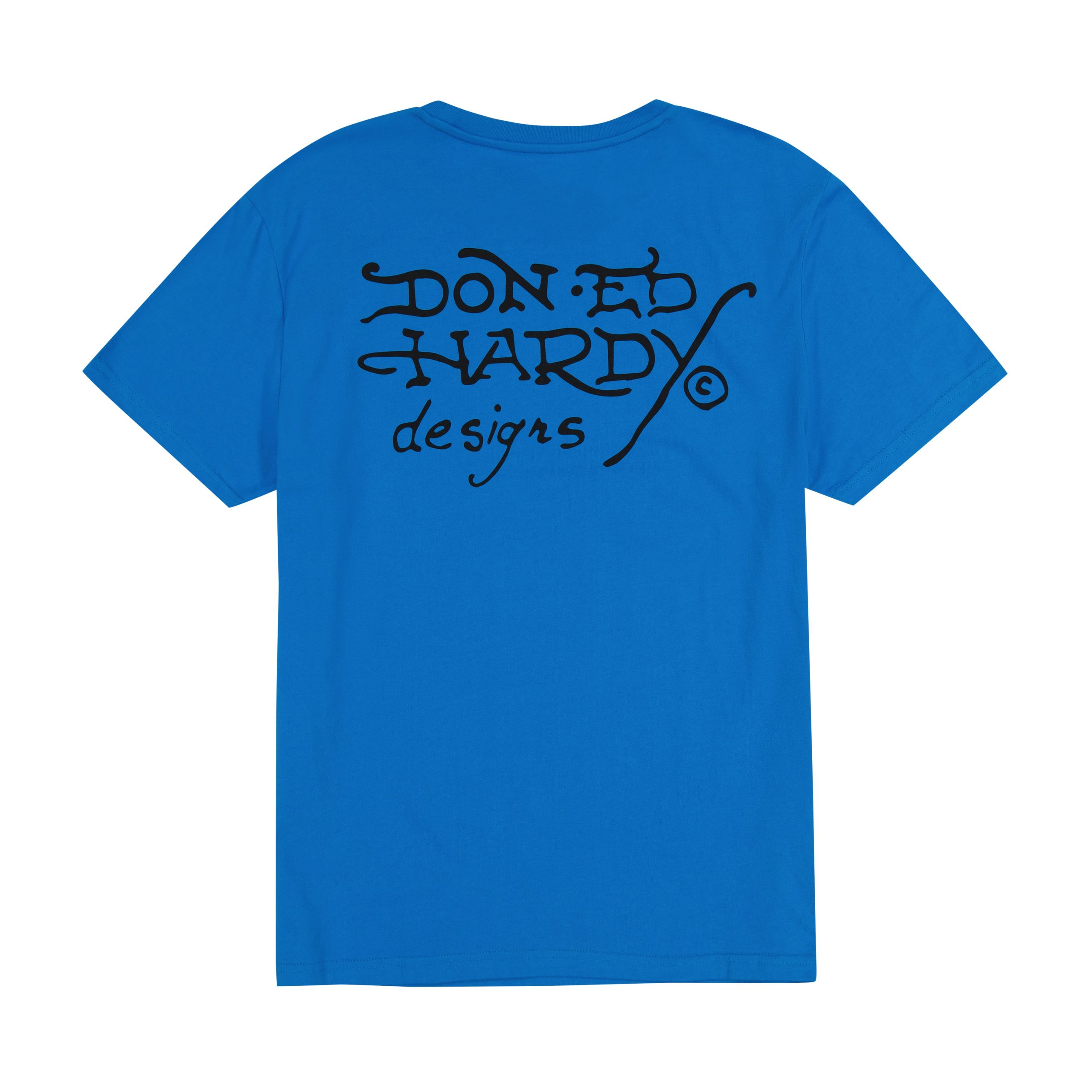 This rhinestone adorned t-shirt is cut in a regular fit and constructed from a soft cotton blend. Complete with an Ed Hardy skull hat graphic and two black logos.